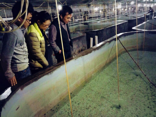 刘教授和企业领导交谈,了解我校实习学生在企业的表现;在阮技术员和乔技术员的陪同下参观了大菱鲆育苗车间及南美白对虾养成车间,了解企业生产情况;并和在一线生产实习学生亲切交谈,了解他们在企业学习生活等情况,对他们勇于吃苦、乐于奉献、刻苦学习的精神给予了肯定,希望学生们努力在专业实践中学习水产养殖技术技能,完成上岗前的实践训练,磨练意志,学到学校里所学不到的知识,丰富阅历,提高职业道德、人文素质等。
