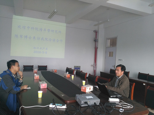 5月8日,中国科学院烟台海岸带研究所陈军博士一行赴 我院 洽谈合作,海洋水产系刘振华教授在B1-210会议室会见了陈军博士一行。