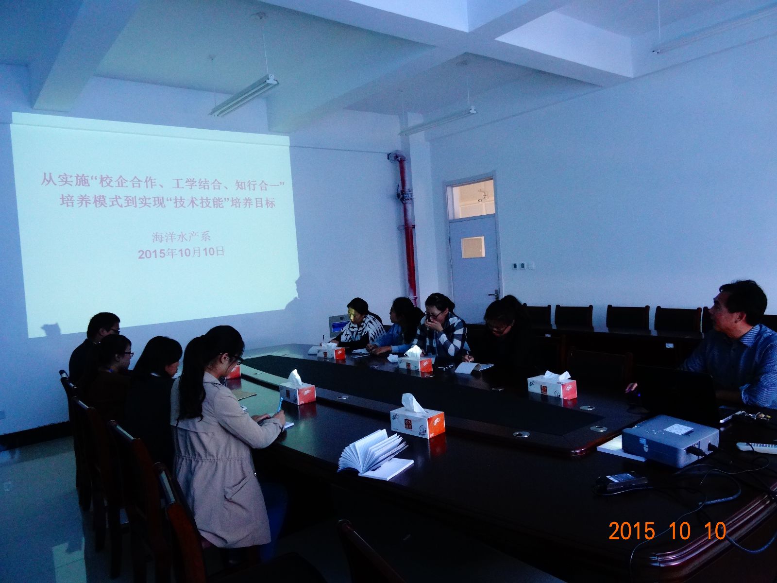 为了增强海洋水产系教学管理的有效性,提升人才培养水平,准确定位高技能人才培养目标,10月10日下午,在B1-210会议室系主任刘振华教授组织全系教职工召开从实施“校企合作、工学结合、知行合一”培养模式到实现“技术技能”培养目标为主题的高职院校教育改革发展会议。