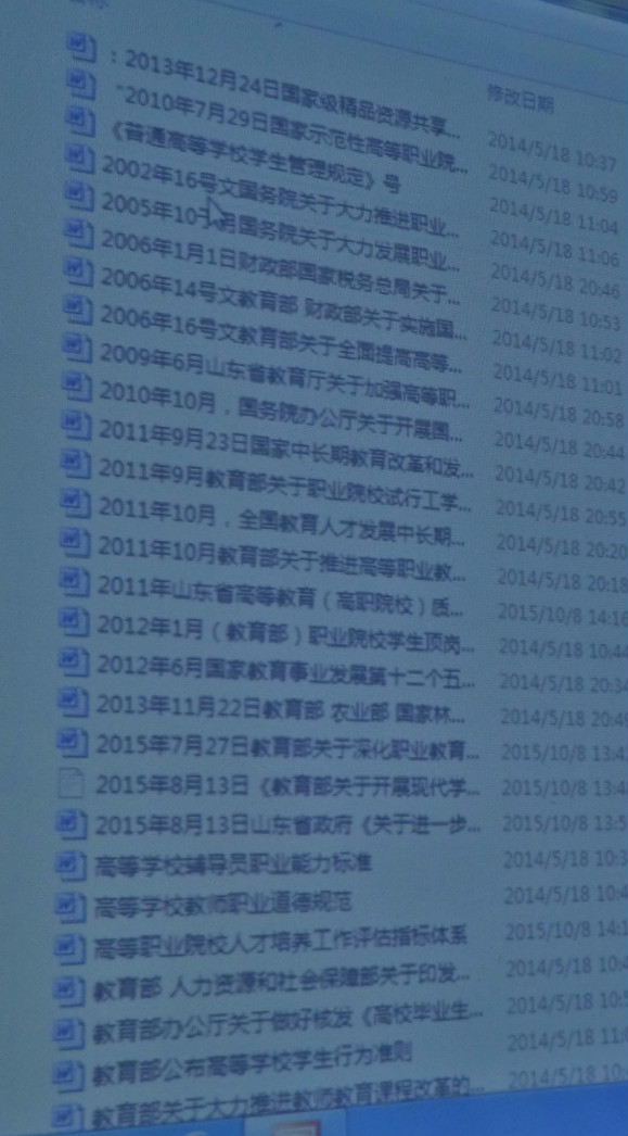 会上,刘教授带领大家认真学习了从2002年国家教育改革起点开始《国务院关于大力推进职业教育改革与发展的决定》(国发[2002]16号)、2006年《教育部关于全面提高高等职业教育教学质量的若干意见》到2015年《教育部关于深化职业教育教学改革全面提高人才培养质量的若干意见》等一系列相关高职院校教育改革方案的政策性文件。