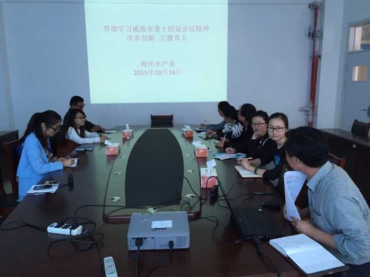 为贯彻落实好威海市委十四届第六次全会精神,增强海洋水产系教学管理的有效性,提出教育教学改革发展总方向,进一步解放思想,加快创新突破,10月16日下午,在B1-210会议室系主任刘振华教授组织全系教职工召开“改革创新、立德育人”为主题的教育改革发展思想讨论会议。会议主要内容包括以下两点: