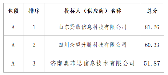 本项目(包段)按照综合评分法评审,排序第一的投标人为本项目的中标人,其余投标人均为未中标人。各投标人综合得分由高到低排序如下: