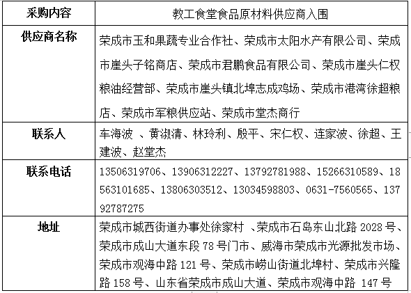 一、采购项目名称:教工食堂食品原材料供应商入围
