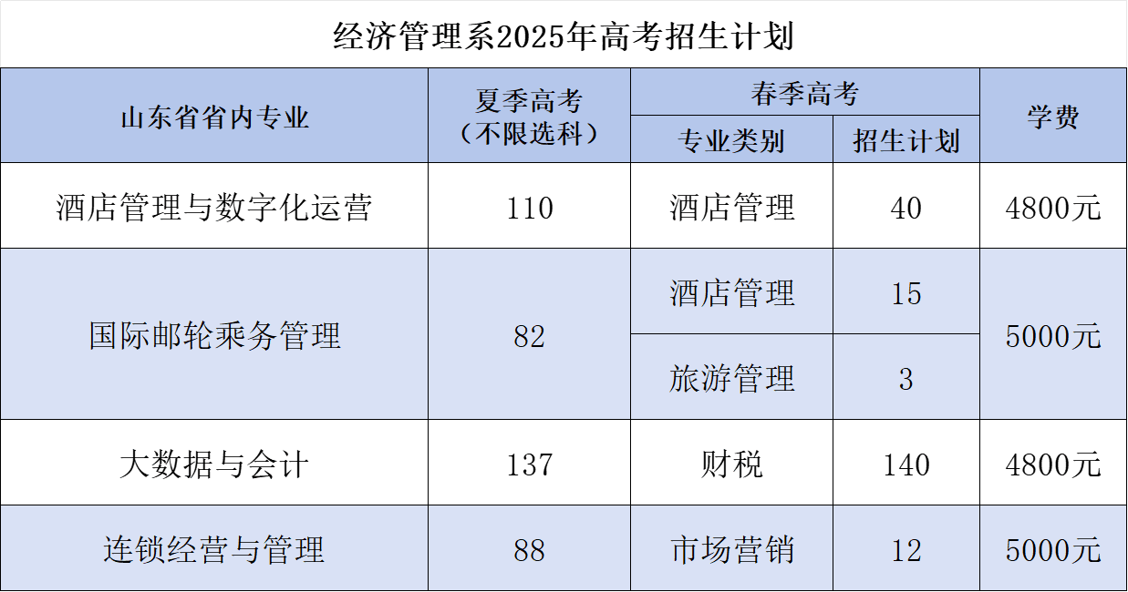 经济管理系2025年春季高考和夏季高考招生计划